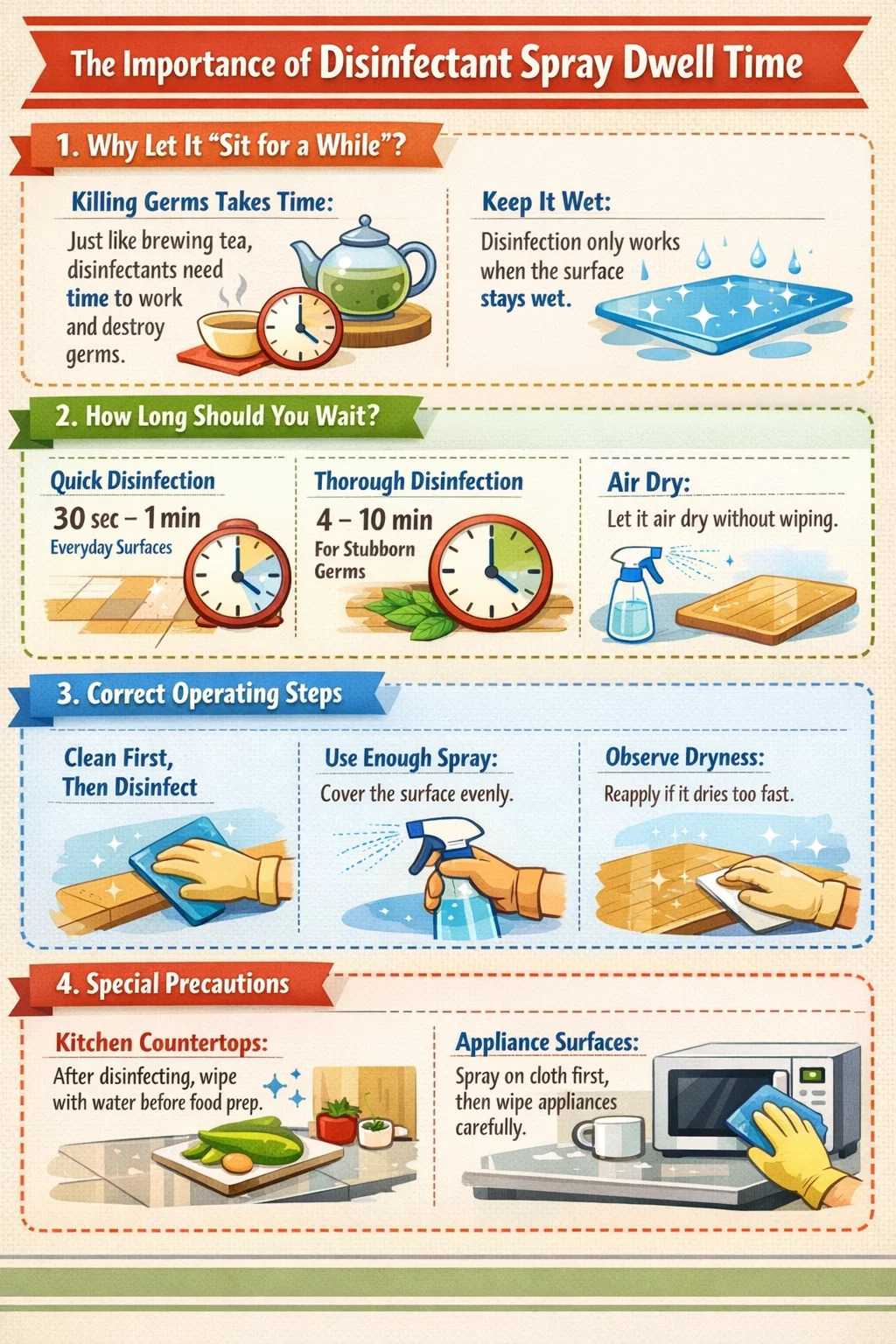 Nuair a úsáid spraeála dífhabhtán , Is é an ghné is éasca a overlooked an "am feithimh." Tá go leor daoine i dtaithí ar spraeáil agus glanadh láithreach, ach ní ghlanann sé seo ach an dromchla agus ní dhéantar díghalrú fíor a bhaint amach.