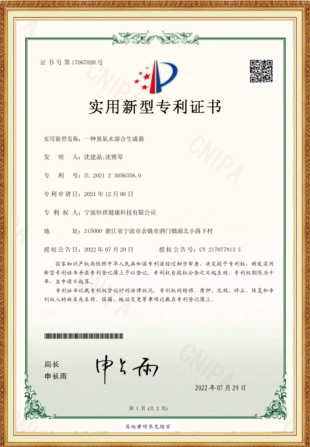 Ningbo Hengqi Teicneolaíocht Sláinte Co, Teo. was established on January 11, 2013. It has been studied in the field of ozone water for more 10 years. At present, it has the professional development capacity agus production capacity of ozone water series products.